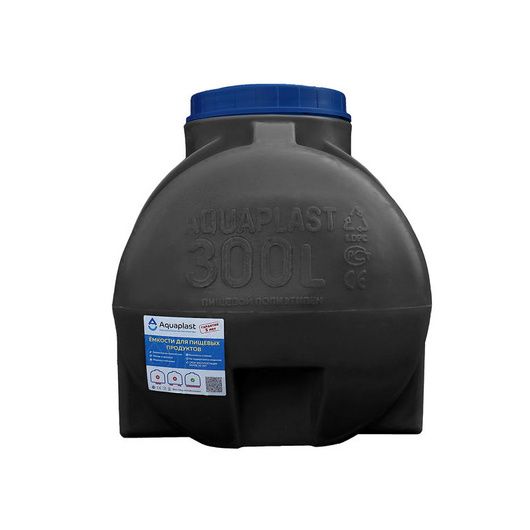 Пластиковая емкость 300 литров (горизонтальная) предназначена для стационарного хранения питьевой воды, пищевых продуктов, агресивных сред (по согласованию), дизельного топлива. Разрешена эксплуатация при температуре от - 50 °С до +50 °С.
