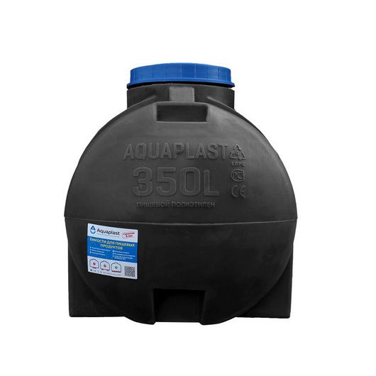 Пластиковая емкость 350 литров (горизонтальная) предназначена для стационарного хранения питьевой воды, пищевых продуктов, агресивных сред (по согласованию), дизельного топлива. Разрешена эксплуатация при температуре от - 50 °С до +50 °С.